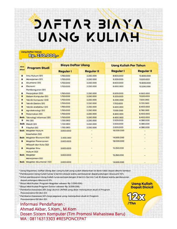 - Biaya Pendaftaran Reguler 2B Cek Biaya Kuliah Pertahun, Klik disini